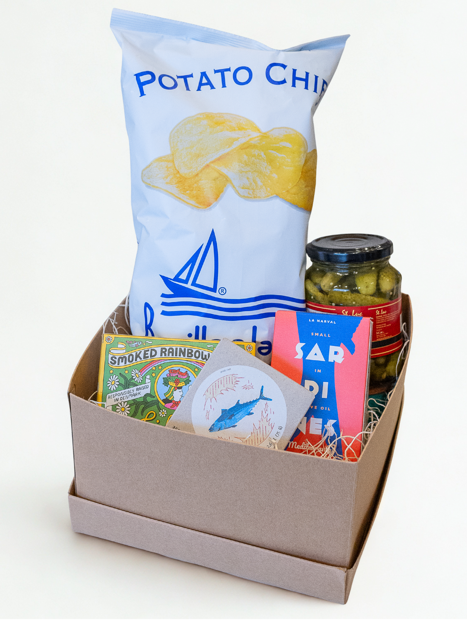 This box works equally well for impromptu entertaining or elevated solo meals. Open a tin, arrange with chips and pickles, and you have something genuinely special without any cooking required.